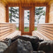 Designed for up to four people, the interior features smooth alder benches that provide comfortable seating and a clean, natural look. The open layout creates a practical, relaxing space for both personal use and small group sessions.