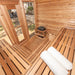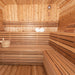 Additionally, the sauna is complemented by the exterior cedar bevel siding, which not only enhances its aesthetic appeal but also adds an extra layer of durability.